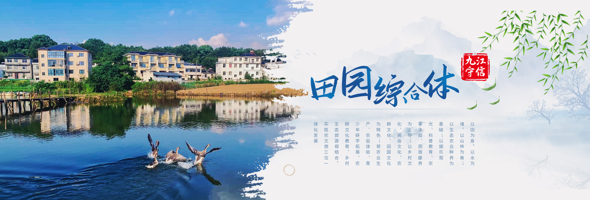 九江守信田園綜合體以田為身,以水為魂,以山林為骨;以生態農業種養為基礎;以娛樂觀光、科普教育、農事體驗、民宿康養為主;以鄉村文化、民俗文化、農耕文化、田園文化為特色;將農業生產、農俗體驗、青少年研學拓展、農耕文化教育、鄉村生態旅游相結合,實現農文旅三位一體化發展,成為生態性、主題性、復合型農莊公園模式...